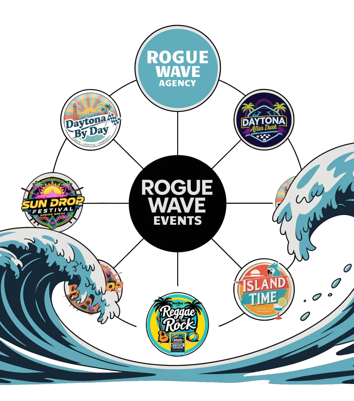 Most agencies sell services. We deliver ecosystems. You get access to our owned event network — including Rogue Wave Events, Daytona After Dark, and Daytona By Day — placing your brand directly in front of thousands of locals, tourists, and highly engaged community audiences.